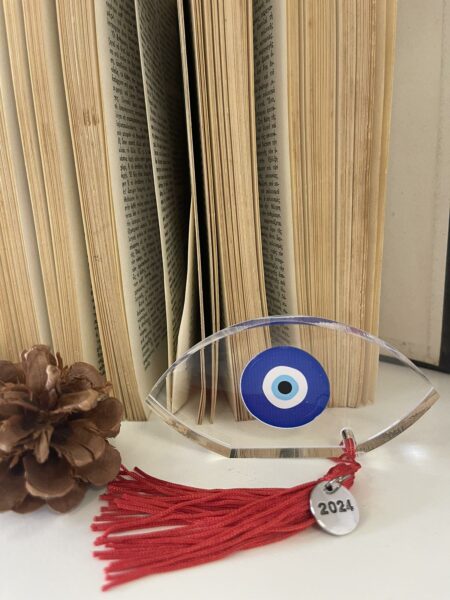 Επιτραπέζιο ξύλινο χρώματος γκρι δάκρυ με χρυσό πλέξιγκλάς μάτι 15εκ
