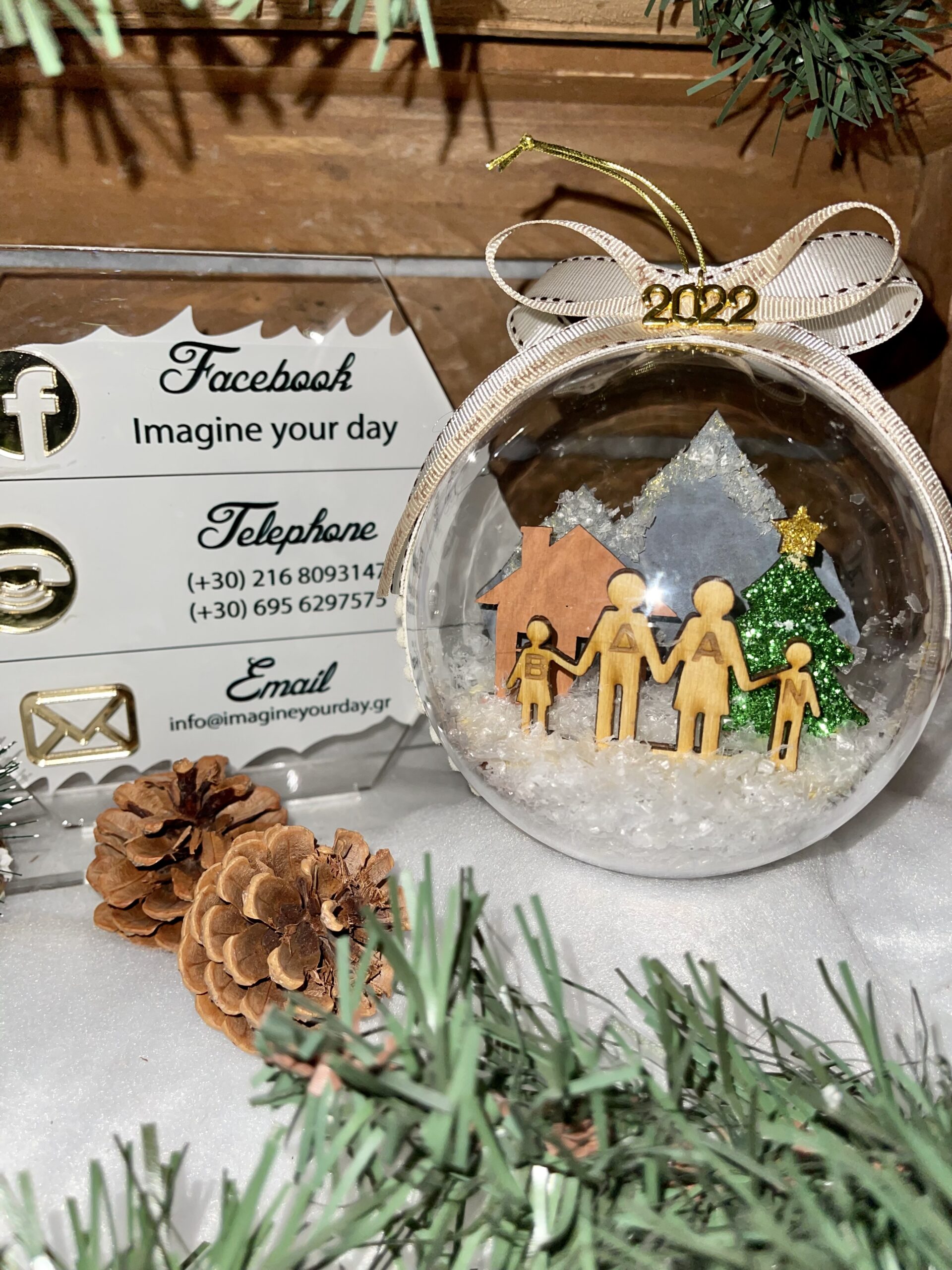 Μπάλα Χριστουγέννων ονομαστική με ταμπέλα σε διάσταση 12 εκατοστών