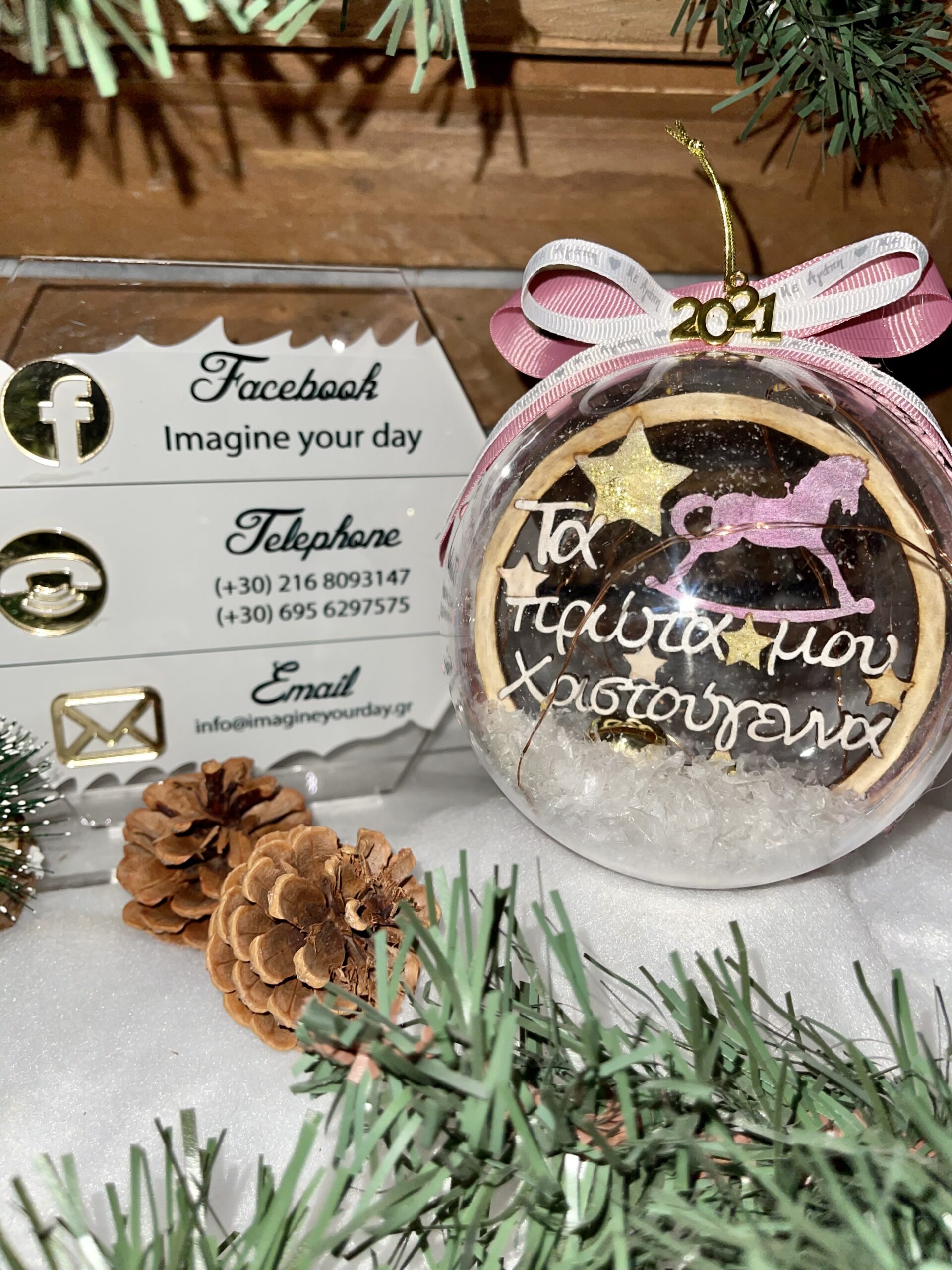 Μπάλα Χριστουγέννων ονομαστική με ταμπέλα σε διάσταση 12 εκατοστών