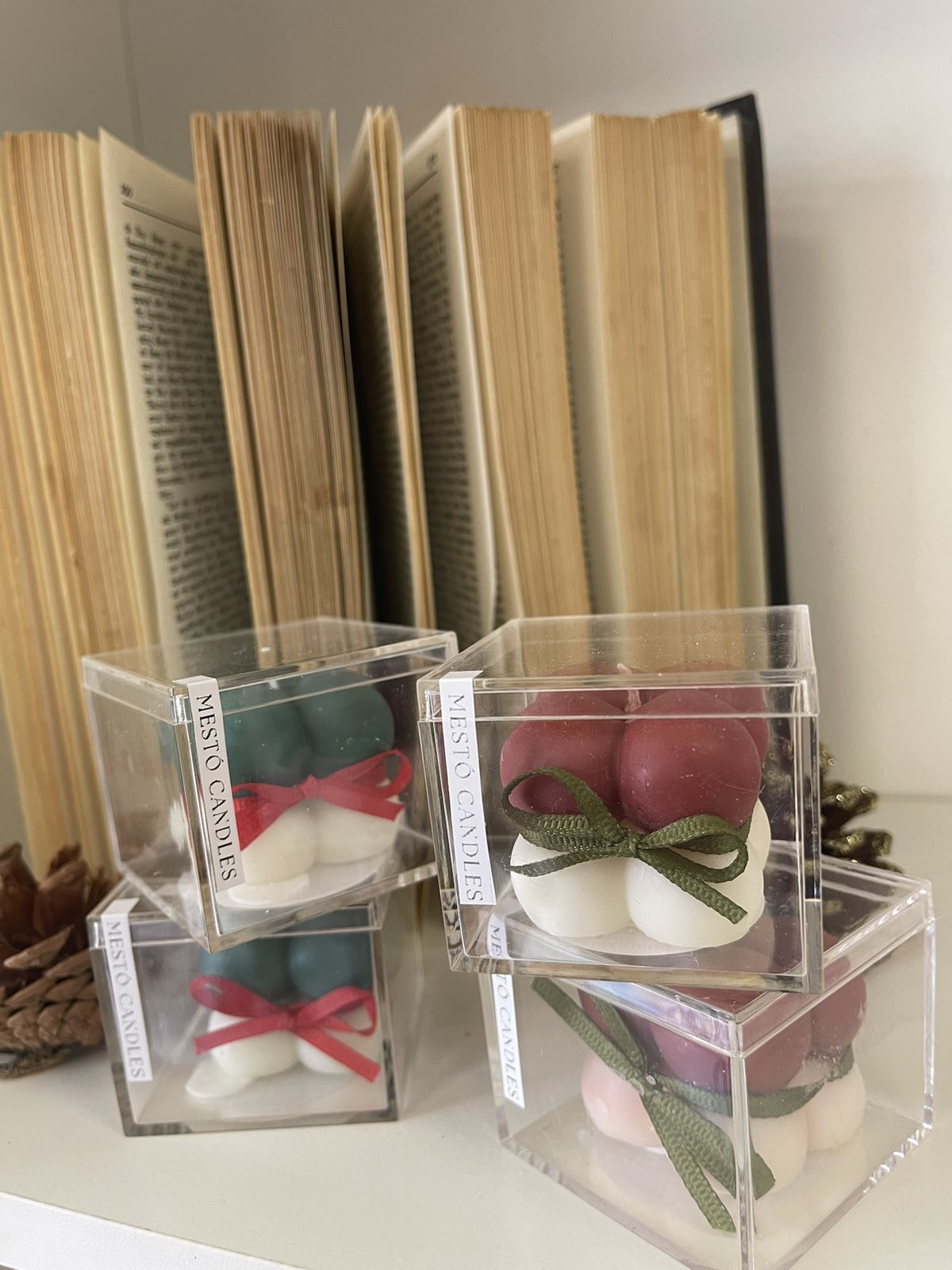 Χριστουγεννιάτικο φυτικό κερί σόγιας mini bubbles σε plexiglass κουτάκι 5 Χ 5,5 εκ με πλέξι γκλας για τη δασκάλα μου