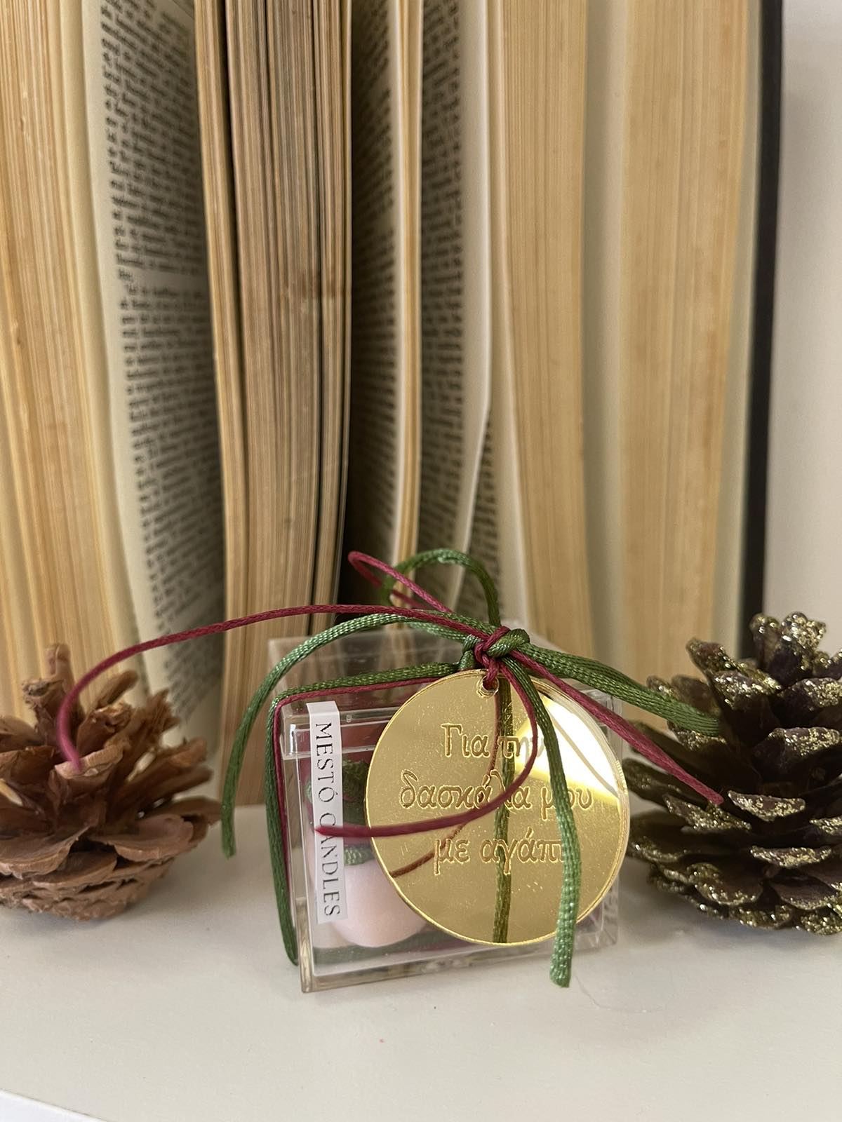 Χριστουγεννιάτικο φυτικό κερί σόγιας mini bubbles σε plexiglass κουτάκι 5 Χ 5,5 εκ με πλέξι γκλας για τη δασκάλα μου. Μπορεί να αλλάξει το κείμενο για το αγαπημένο σας πρόσωπο
