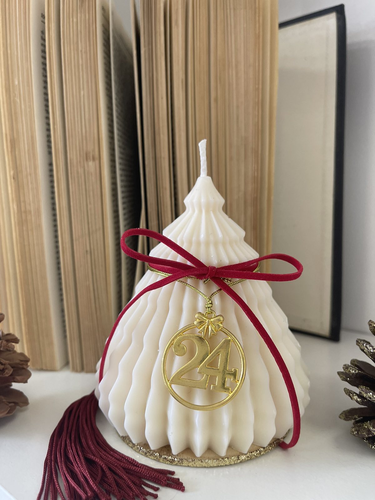 Χριστουγεννιάτικο φυτικό κερί σόγιας με άρωμα μελομακάρονο ύψος 12 εκ διάμετρος 10 εκ σε χρώμα κρεμ