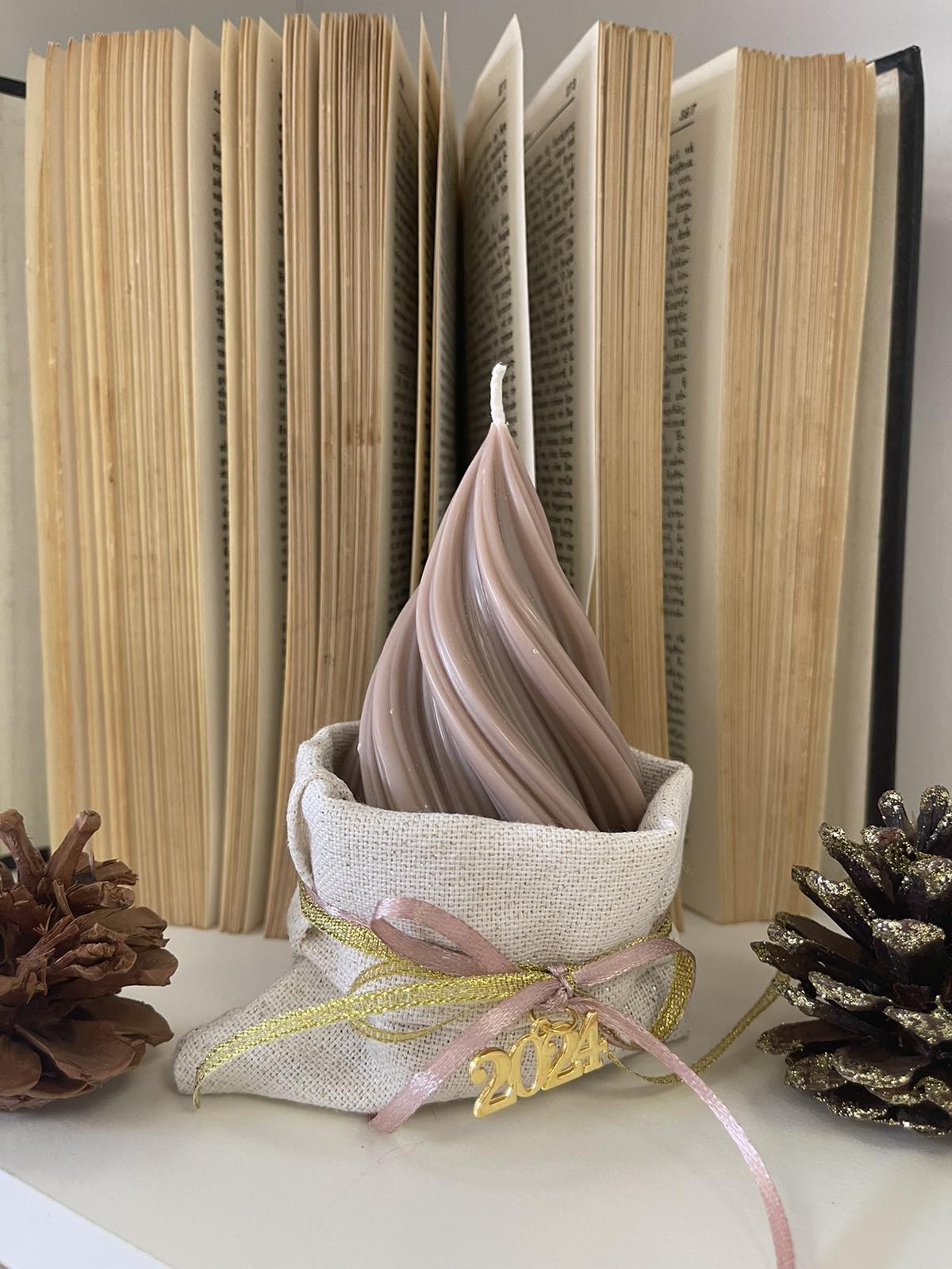 Χριστουγεννιάτικο φυτικό κερί σόγιας με άρωμα μελομακάρονο σε πουγκάκι 12Χ9 σε χρώμα nude