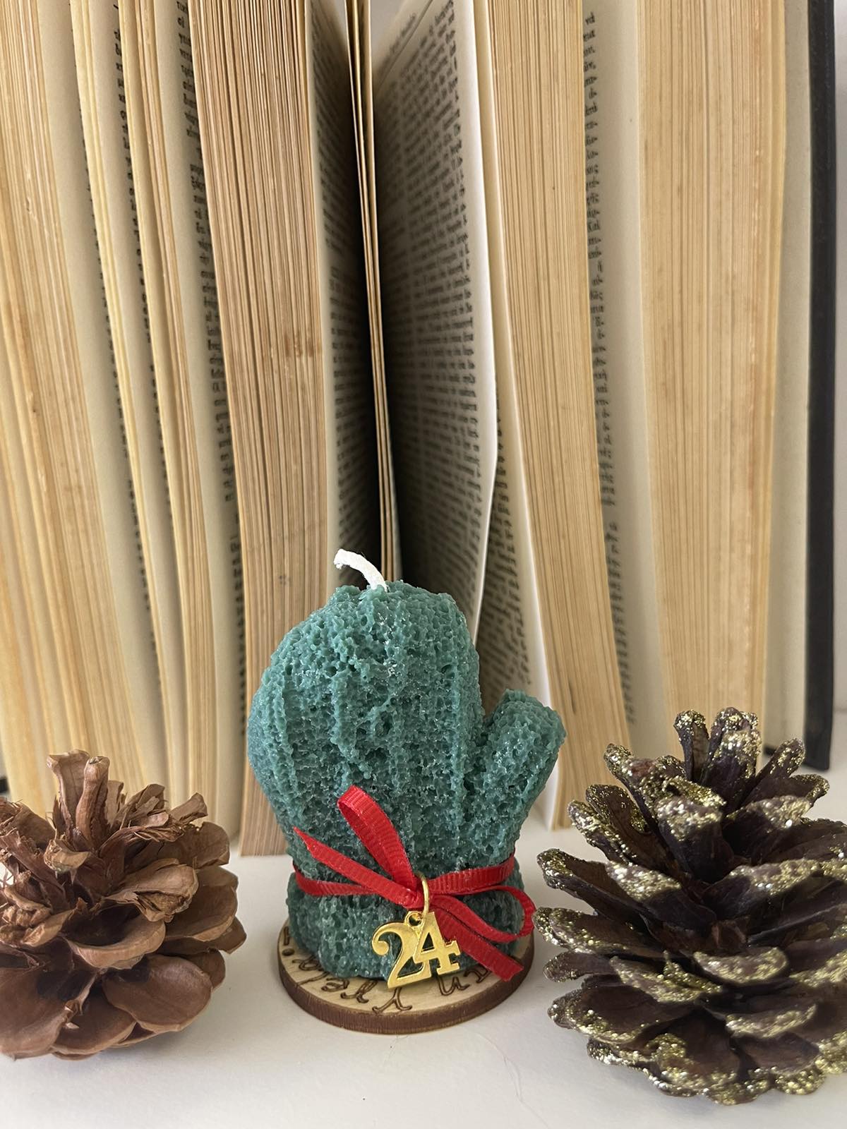 Χριστουγεννιάτικο φυτικό κερί σόγιας με άρωμα μελομακάρονο σε σχήμα γαντάκι ύψος 7 εκ σε κυπαρισσί χρώμα