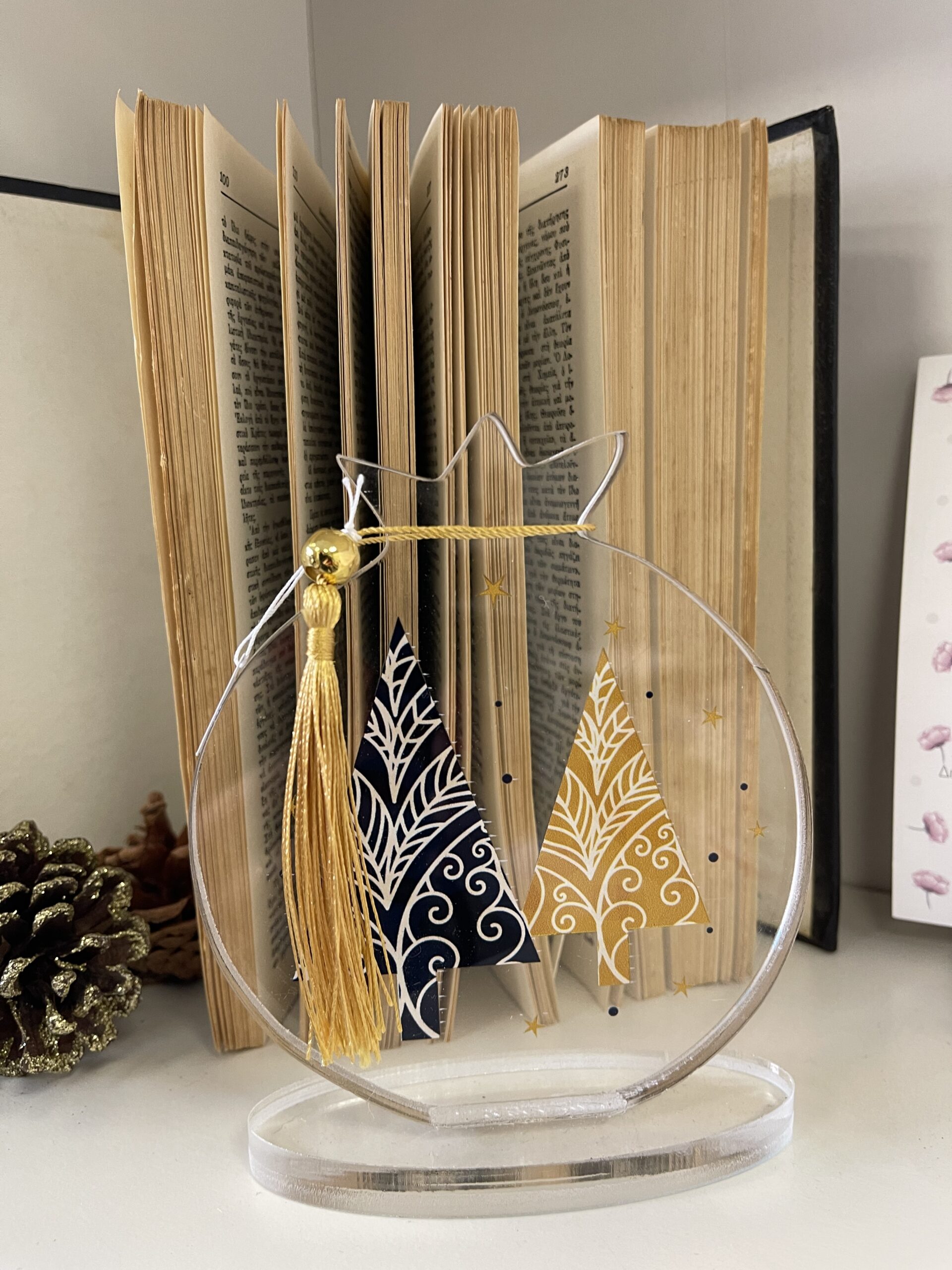 Ξύλινη κατασκευή σε σχήμα χριστουγεννιάτικου δέντρου σε χρώμα μπλε με plexiglass χρυσό δέντρο 20Χ12