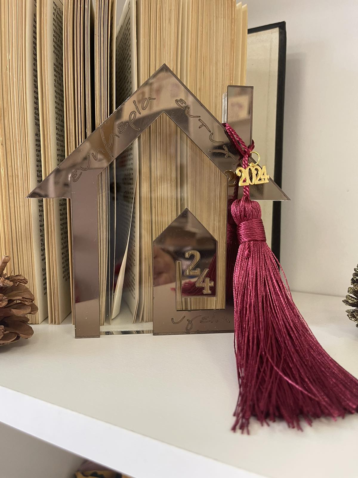 Χριστουγεννιάτικο ρόδι σε διάφανο plexiglass με μικρότερο ρόδι σε χρυσό plexiglass Υγεία Αγάπη