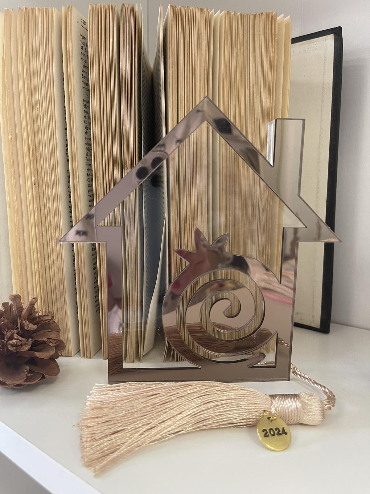 Επιτραπέζιο σπιτάκι χρώματος bronze πλέξιγκλάς καθρέφτη με ρόδι 15εκ