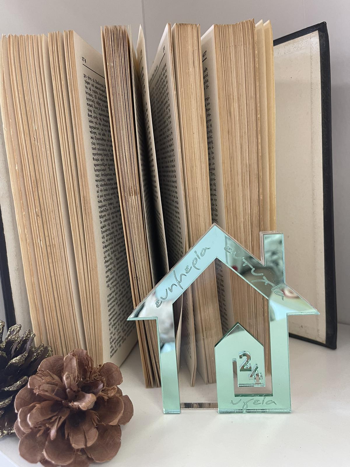 Επιτραπέζιο σπιτάκι πλέξιγκλάς χρώμα αβοκάντο με ευχές 10εκ