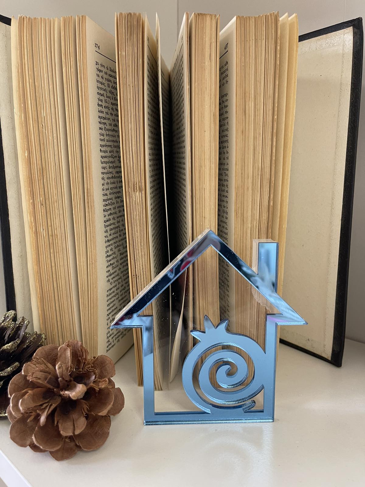 Χριστουγεννιάτικο ρόδι σε διάφανο plexiglass με μικρότερο ρόδι σε χρυσό plexiglass Υγεία Αγάπη