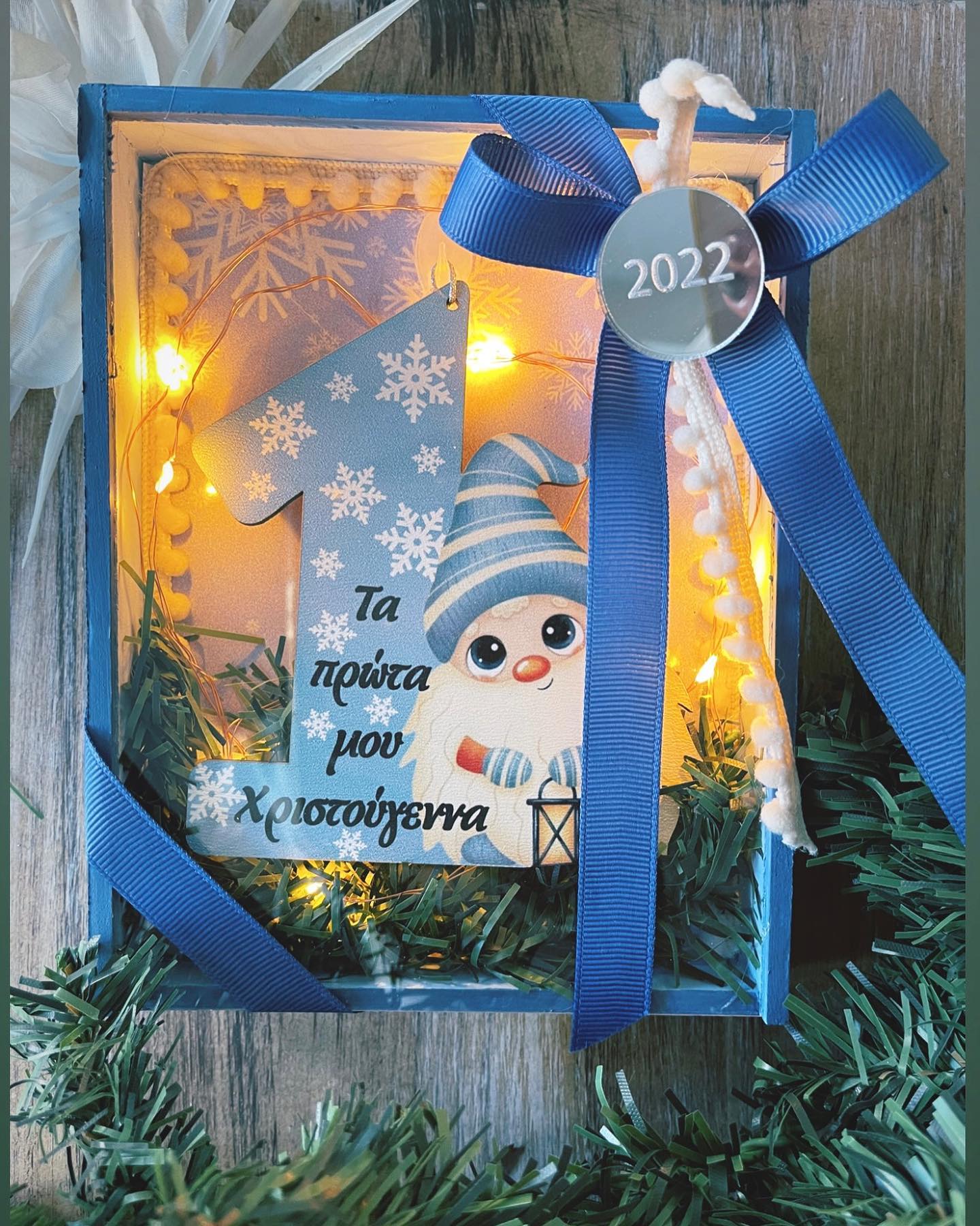 Καδράκι τα πρώτα μου Χριστούγεννα με ψηφιακή εκτύπωση και λαμπάκια σε μπλε χρώμα 14χ18