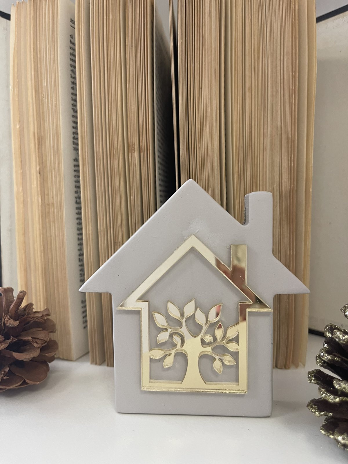 Ξύλινο επιτραπέζιο σπιτάκι χρώματος γκρι με πλέξιγκλάς δέντρο της ζωής 10εκ