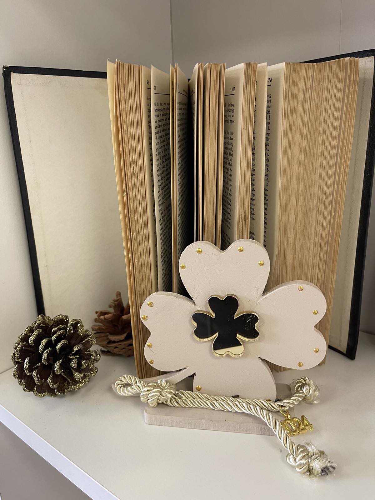 Ξύλινη κατασκευή σε σχήμα τριφύλλι μπεζ χρώμα με plexiglass χρυσό τριφύλλι 11Χ14